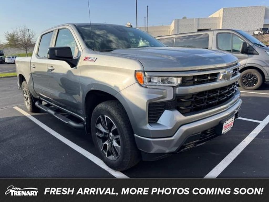 2023 Chevrolet Silverado 1500 for sale near St. Peters in O'Fallon at Jim Trenary Chevrolet. Front heated 40/20/40 split-bench seat, back up camera, navigation system, remote engine start, 4DR crew cab, 5.3L V8, 4WD, 18" bright silver painted aluminum wheels, SiriusXM radio with 360L enjoy a trial subscription of platinum plan for the full 360L experience, Chevrolet infotainment 3 premium system with Google built-in/13.4" diagonal HD color touchscreen includes multi-touch display, AM/FM stereo/Bluetooth streaming audio for music and most phones; featuring wireless Android Auto and Apple CarPlay capability for compatible phones/advanced voice recognition, Wi-Fi hotspot capable, 6 speakers, leather wrapped heated steering wheel with audio and cruise controls, split folding rear bench seat, keyless entry and start, deep tinted glass, tailgate-gate function manual with EZ lift includes power lock and release, bed mounted 120-volt power outlet, OnStar equipped (service required), stability control system with proactive roll avoidance and traction control includes electronic trailer sway control and hill start assist, hitch guidance dynamic single line to aid in trailer alignment for hitching, trailering package includes trailer hitch with 7-pin and 4-pin connectors, Chevy safety assist includes IntelliBeam, automatic emergency braking, forward collision alert, front pedestrian braking, lane keep assist with lane departure warning, dual-stage frontal airbags for driver/front passenger, seat-mounted side-impact airbags for driver/front passenger, head-curtain airbags for front/rear seating positions and tire pressure monitoring system with tire fill alert. Come in and fall in LOVE with this 2023 Chevrolet Silverado 1500. Thanks for looking hope to hear from you soon.